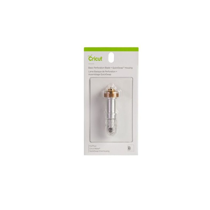 2007450 - Cricut Maker Perforation Blade Tip with QuickSwap Housing; Basic Perforation Blade, 2.5 mm teeth / 0.5 mm gaps; Create perfect tear-offs and easy peel-aways using paper, cardstock, acetate, poster board, and more; For Cricut Maker® machines only; Includes QuickSwap™ Housing.